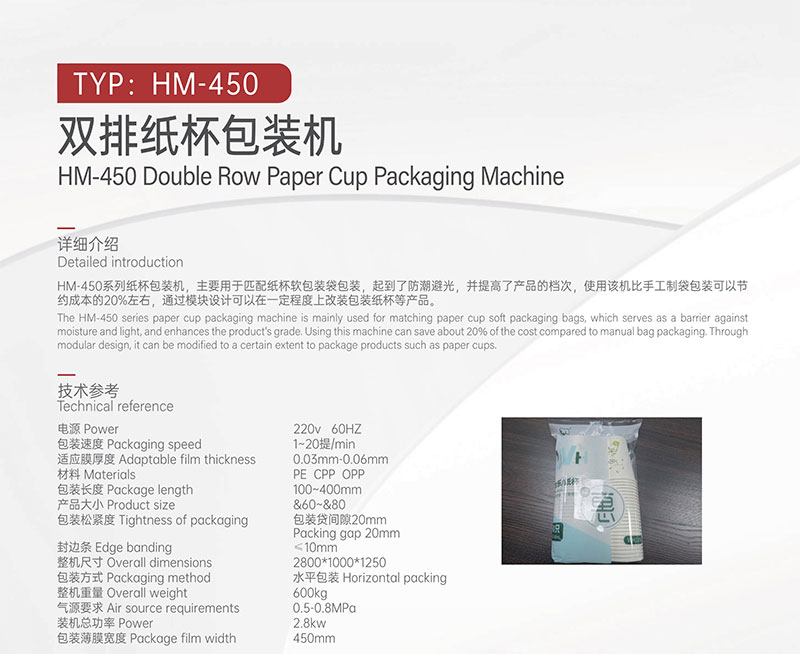 HM-600雙多工位收杯機,HM-450雙排50支紙杯包裝機